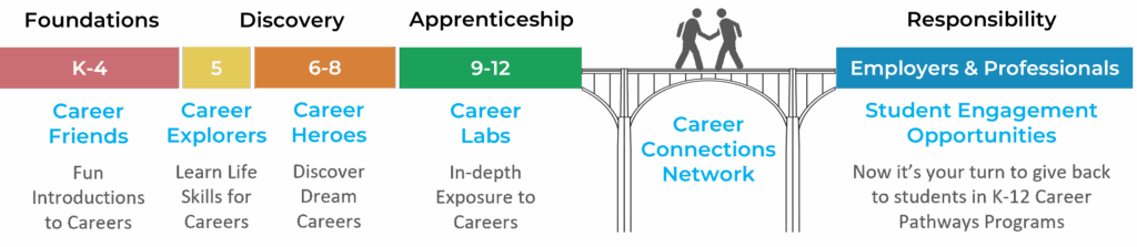 We view the career pathway as a continuum starting in elementary school and continuing through four “Ages” that last throughout their careers.
